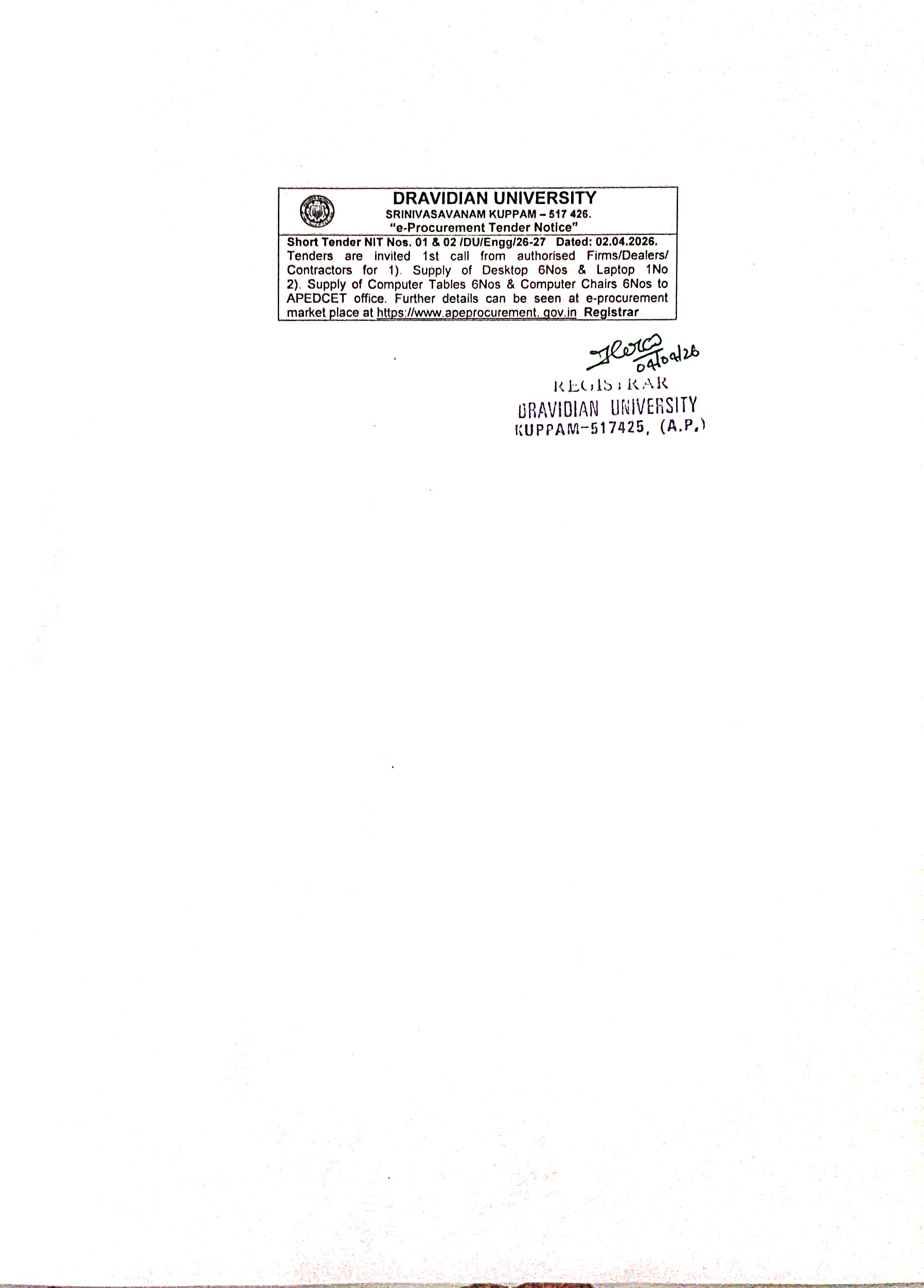 3rd Convocation of Dravidian University scheduled to be held on 29th March 2026 is hereby postponed to a later date
